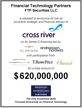 FT Partners Advises Cross River on its $620,000,000 Series D Financing