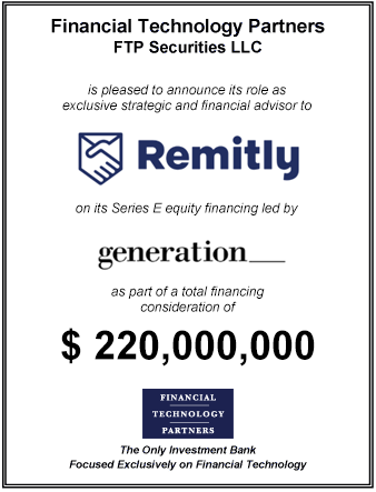 - FT Partners served as exclusive strategic and financial advisor to Remitly and its board of directors on its $135 million in Series E Equity financing