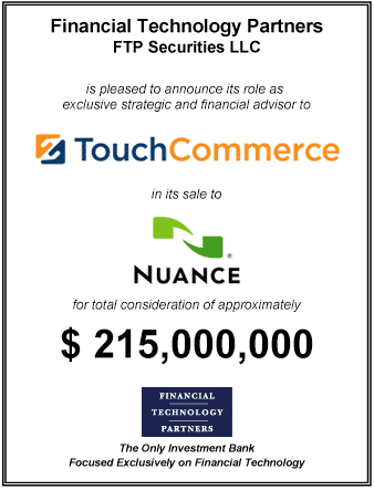- FT Partners served as exclusive strategic and financial advisor to TouchCommerce and its Board of Directors in this transaction